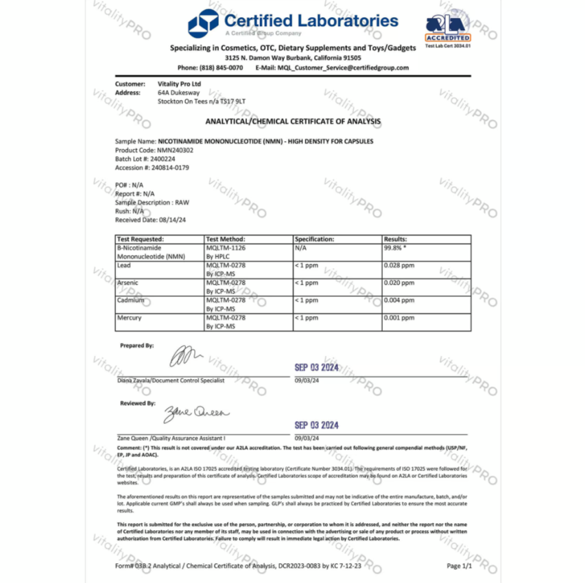 Vitality Pro’s NMN is designed for adults seeking to maintain general vitality and cellular function as they age.