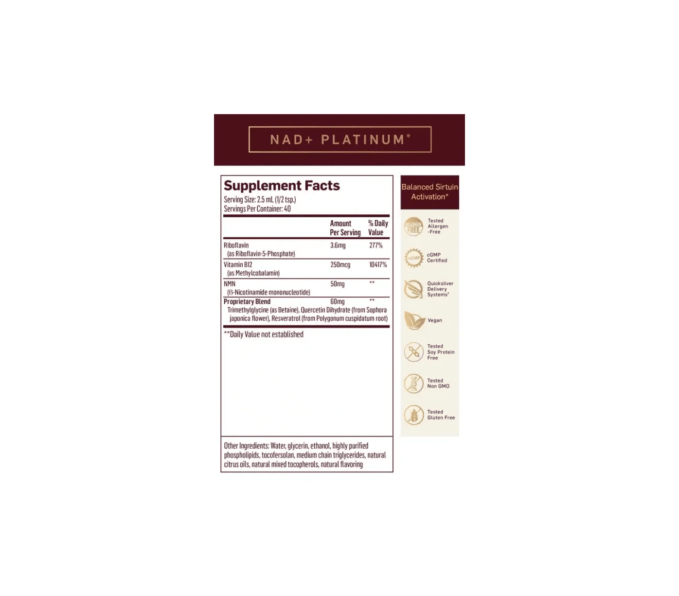 As we age, natural NAD+ levels decline, which can lead to fatigue, cognitive decline, and reduced metabolic efficiency. NAD+ Platinum helps restore this critical coenzyme while activating protective longevity genes and supporting detoxification pathways. With its powerful formula and liposomal delivery, NAD+ Platinum is ideal for those seeking sustained energy, clarity, and cellular resilience.