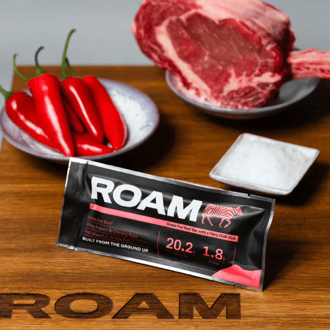 Jalapéno Chilli Protein Bar – a fiery twist on high-protein nutrition. Crafted with grass-fed beef and just 6 all-natural ingredients, this bar packs a bold kick of red jalapeno flavour while delivering more protein per calorie than any other bar on the market.
